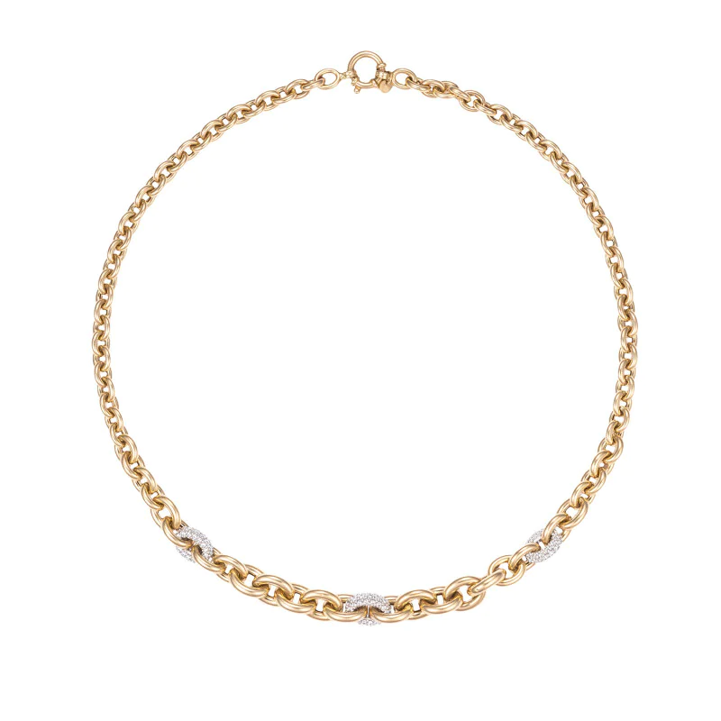 This elegant 14K gold necklace (585) features classic yellow-gold links intertwined with white-gold accents set with sparkling cubic zirconia. The refined interplay of color and shine creates a luxurious, timeless look that enhances natural beauty with subtle sophistication. A perfect choice for those who appreciate exquisite details and premium craftsmanship – a piece that captivates with every movement. with love