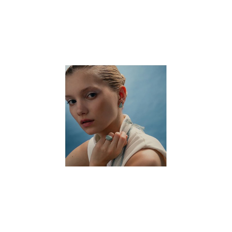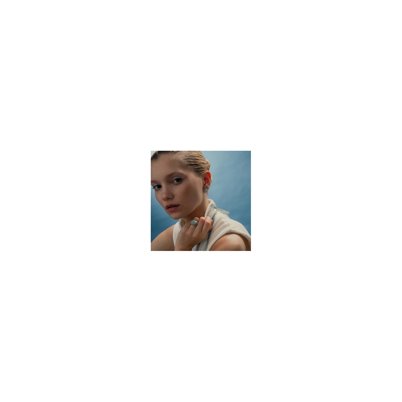 Pierścionek, zdobiony imponującym, dużym akwamarynem, subtelnie osadzonym w lśniącym srebrze pokrytym różowym złotem. Połączenie olśniewającego kamienia z romantycznym odcieniem różowego złota tworzy pierścionek, który emanuje wyrafinowaniem dizajnem.