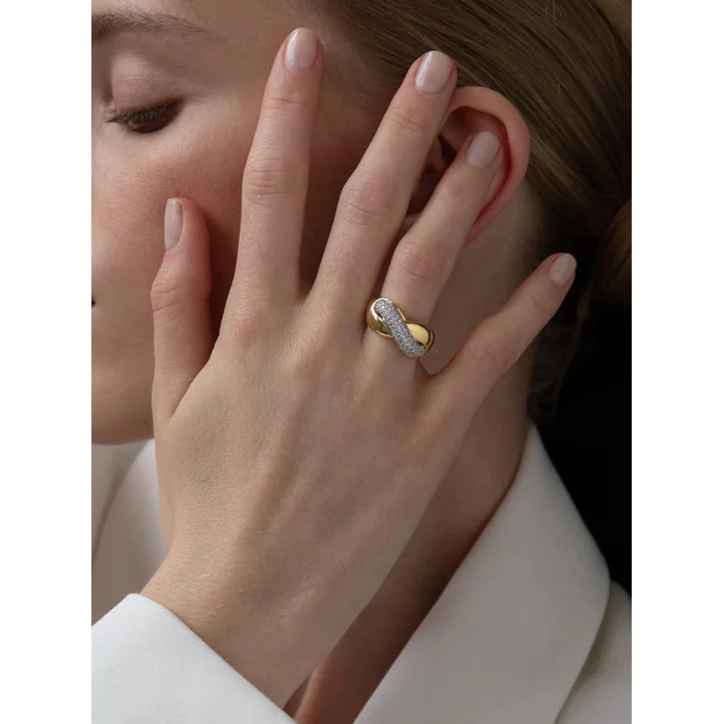 Precyzja i geometria zamknięte w szlachetnej formie. Pierścionek Infinity łączy chłodny połysk srebra z rytmicznym układem cyrkonii, tworząc wyważony balans między strukturą a światłem. Jego forma jest wyrazista, ale nie krzykliwa – przyciąga uwagę proporcją i harmonią detalu. To biżuteria dla osób, które cenią architektoniczną dyscyplinę formy i współczesny minimalizm w luksusowym wydaniu.
